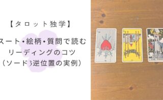 タロットカードタロット独学|スート×絵柄×質問で読むリーディングのコツ(ソード3逆位置の実例) 50代からタロットを独学で始めました。現在、Instagramで タロット勉強ノート を不定期に投稿しています。10月はどんな月になる?これからの私を導くキーワードは?私が力を発揮できる仕事はどっち?など、二択・三択・スリーカード(過去 /... 2025.10.31タロットカードタロットカード勉強ノート